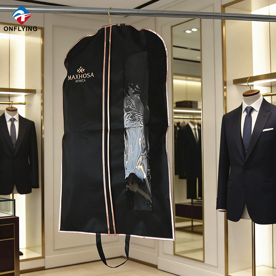 Onflying Garment Accessory Industiral Limited is China Suit Garment Cover manufacturer, that can offer all kinds of garment bags, such as dress bags, suit bags, coat bags, tote bags, shopping bags, wig bags, etc. Our factory is with over 10 years exporting experience who focuses on high quality customized garment bags with competitive price and on enjoyable professional customers sales service.