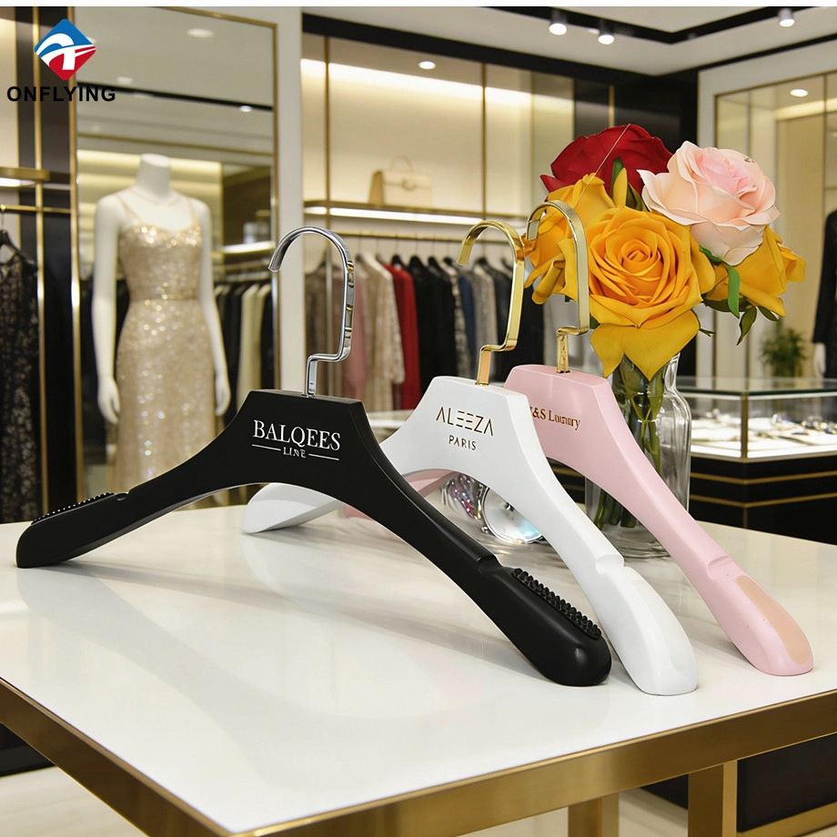 We Onflying Garment Accessory Industiral Limited is a China Wooden Clothes Hanger manufacturer, This wooden hanger Custom Logo is for hanging clothes.