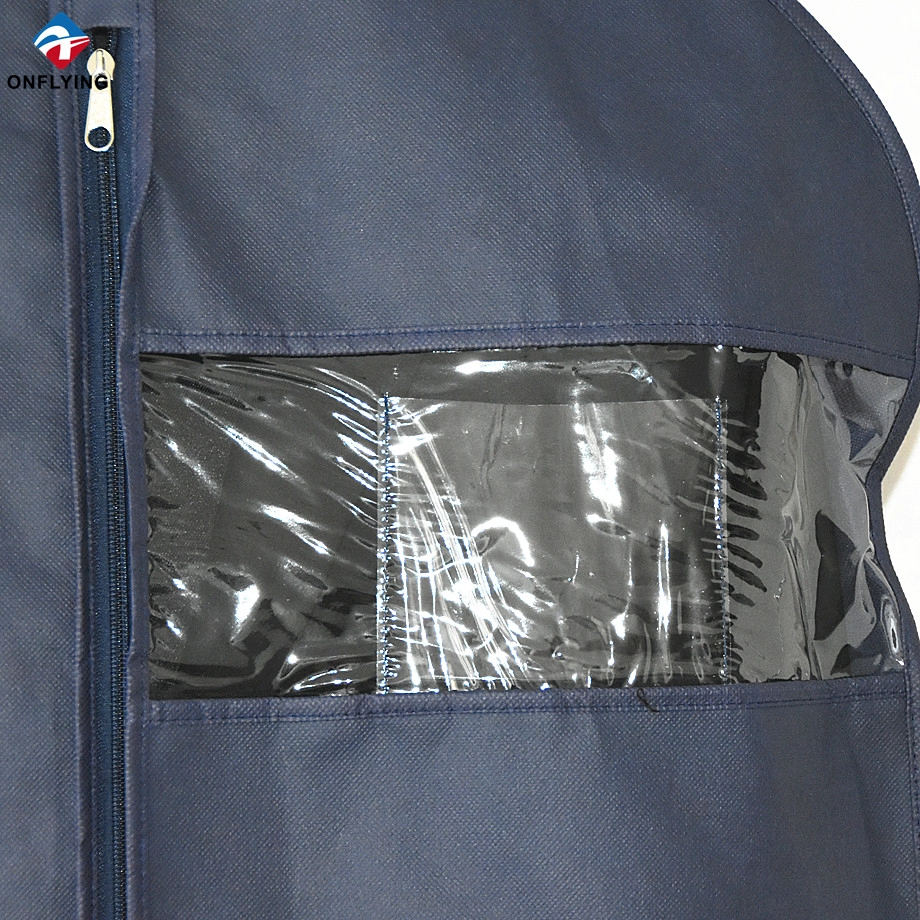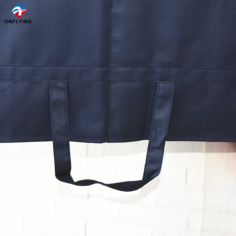เรา Onflying Garment Accessory Industiral Limited คือ a ประเทศจีน ผ้าคลุมชุดสูท ผู้จัดจำหน่าย, ปกโลโก้กระเป๋าการ์เม้นท์แบบกำหนดเองสีน้ำเงินนี้มีไว้สำหรับการปกป้องเสื้อผ้า